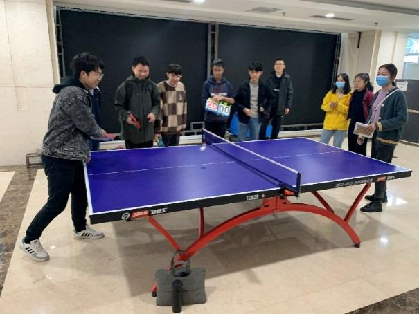 “乒乓球大作战”是最激烈的赛场了,3 V 3乒乓球比拼各组打得如火如荼,现场不断传来阵阵欢呼声。