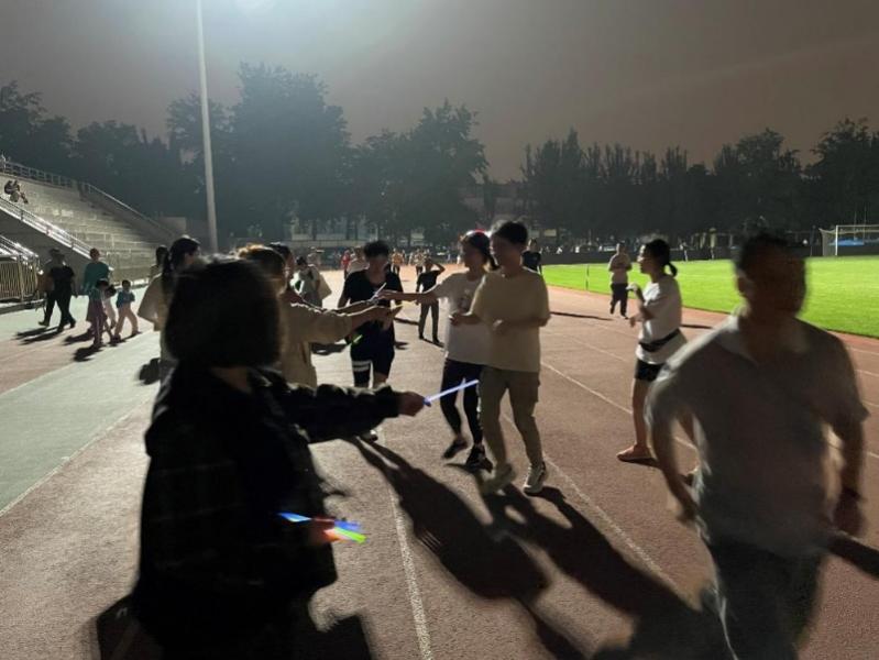 同学们热情洋溢,在运动场上一圈又一圈地尽情奔跑,每跑完一圈都可以从工作人员手中接过代表运动成果的荧光棒。同学们用双脚丈量着跑道,不知不觉中,手里的荧光棒越来越多,也越来越绚丽夺目!星星点点的荧光在操场各处亮起上百名信院学子化身荧光精灵在操场上用荧光汇成了一圈圈耀眼的银河点亮春日的夜晚同学们在操场上奔跑着汗水淋湿了脸颊脚步仍坚定向前因为他们深知身体是革命的本钱只有好的身体才能更好地坚守科研阵地为祖国建设奉献自己的力量。