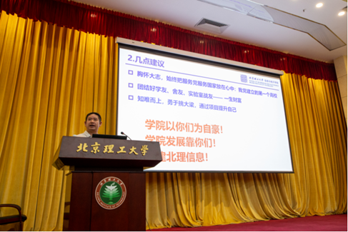首先,忻向军代表学院全体教职员工对所有新生的到来表示欢迎和祝贺,并从院史院情、理想信念、国防教育等几个方面出发,向新生们生动讲述了学院人才培养综合实力以及学科发展前景。随后,他鼓励新生们要胸怀大志,始终把服务党和国家建设放在心中;要团结好学友、舍友、实验室战友,这将是一生的财富;知难而上,勇于挑大梁,充分利用学院的科研平台夯实学科基础,拓宽专业视野,提升自身本领。