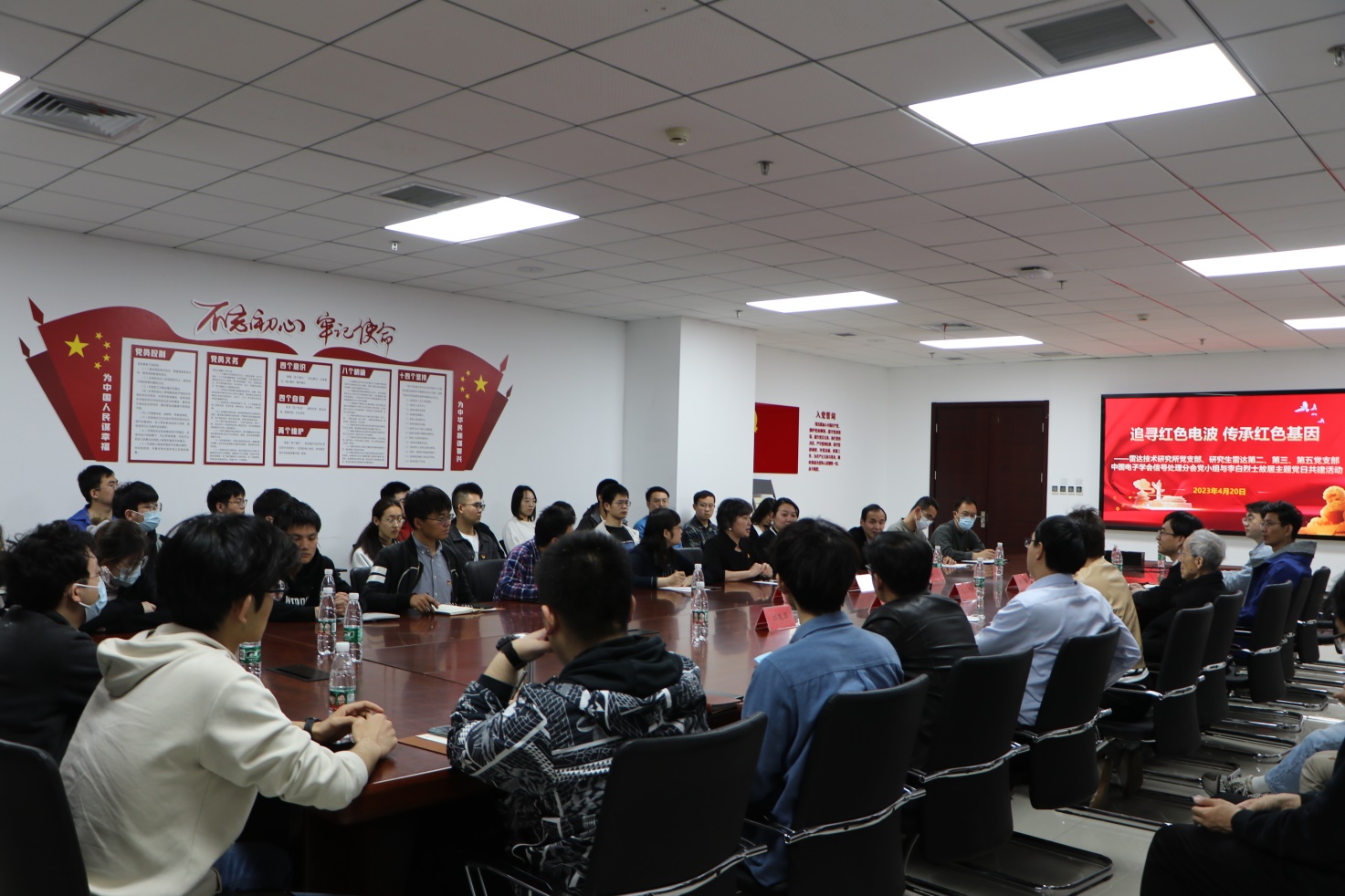 杨小鹏主持了共建交流座谈会,并作了题为《科研报国先锋领,红色基因代代传》的报告,介绍了雷达技术研究所的基本情况以及党支部独特的“三聚焦”工作法。何瑛馆长通过5分钟的视频短片介绍了上海李白烈士故居的情况,并讲述了上海虹口红色教育基地为保持共产党人的初心和使命所做的重要贡献。