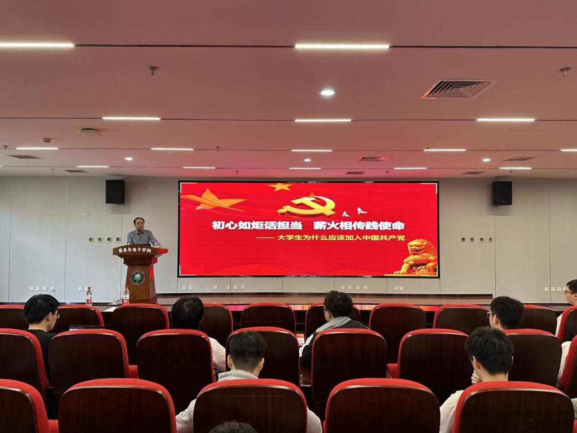 为深入学习贯彻习近平新时代中国特色社会主义思想,进一步提升入党积极分子培养质量,5月14日下午,必威西汉姆联2025年上半年入党积极分子培训班暨“五老”思政导师专题党课在信息科学实验楼202报告厅举行。学院老校友、关工委“五老”思政导师韩力同志作了《初心如炬话担当,薪火相传践使命》专题党课。学院党委副书记、副院长侯明佳、党建工作辅导员李尚谕、党建组织员叶飞扬、入党积极分子参加了此次活动,活动由学院研工委书记潘欣主持。