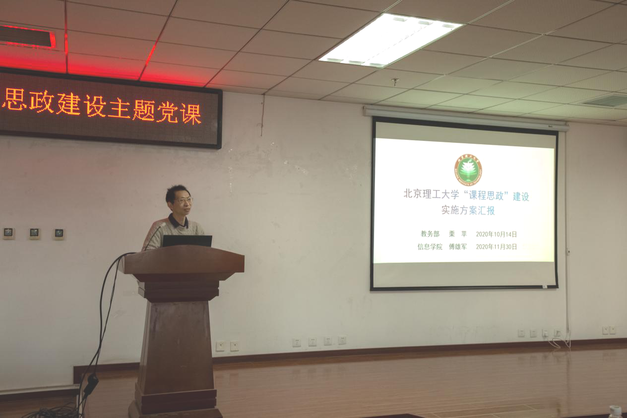 学院分管本科教学副院长傅雄军、分管研究生教学副院长陈禾分别传达教务部、研究生院关于课程思政建设的指示安排,主要从课程思政建设实施方案背景、实施方案内容、下一阶段建设任务三个方面传达学校工作推进要求。