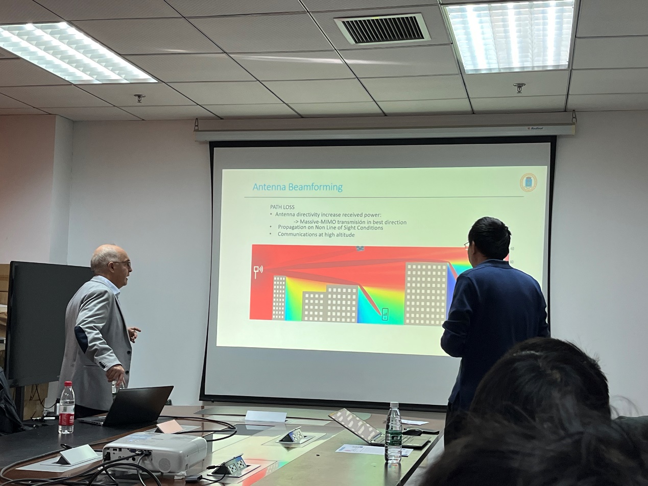 在报告中,Cesar Briso教授首先讲解了城市蜂窝网络对无人机覆盖的相关知识与技术,并指出当前网络对无人机的覆盖性能应该根据高度变化分别分析。接下来,他详细介绍了6G网络在无人机覆盖、波束成形中的关键技术与技术难点,并展示了他们开展的5G无人机测量工作与相关结论。最后,Cesar Briso教授介绍了他们后续的测量计划,并对马德里理工大学的院系与团队做了介绍。