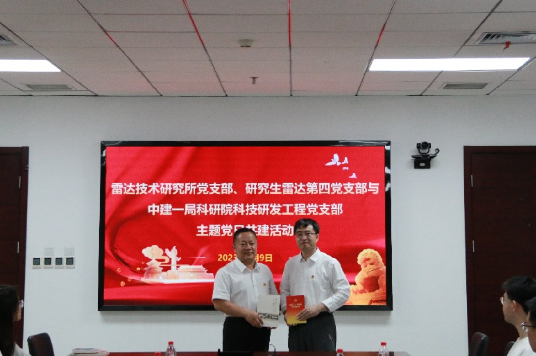 座谈会期间雷达技术研究所党支部与中建一局科研院科技研发工程党支部互赠书籍,表示了对共建常态化的深切期望。