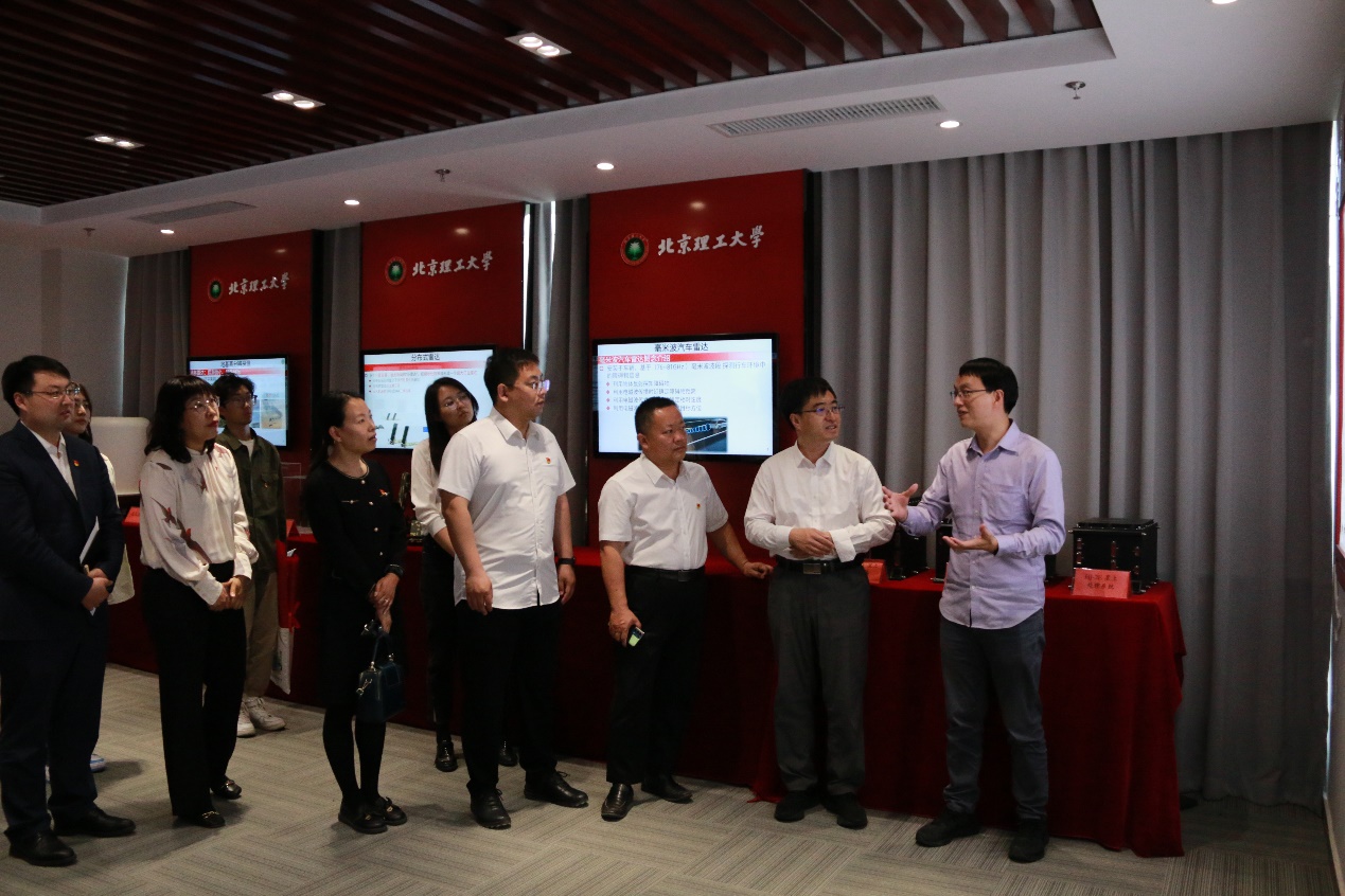 在北理工活动结束后,中建一局党总支委员、副总经理、总工程师、中建一局工程研究院副院长王长军带领师生党员代表前往中建一局科研院第六检测所试验室进行参观,详细介绍了目前在建筑行业的多种检测设备和前沿研究。参观完毕后,中建一局科研院领导及党员代表与我校师生代表进行了座谈,深入探讨了未来进一步校企合作的方向。活动最后,杨小鹏与王长军为校企实习实践共建基地进行了签约并举行了基地揭牌仪式,为两单位的校企实质深入合作迈上新台阶打下了良好基础。
