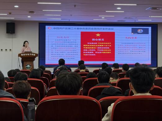 必威西汉姆联2025年下半年入党积极分子培训班于11月13日在信息科学实验楼202报告厅成功举办,学院党委副书记、副院长侯明佳出席会议,学生工作部学生一室主任王晓静线上参会,134名入党积极分子参加培训。本次培训紧扣“擘画‘十五五’新蓝图,深化中国之治实践”主题,组织入党积极分子深入学习党的二十届四中全会精神,引导积极分子准确把握党中央关于全面深化改革、推进中国式现代化的战略部署,深刻领会习近平总书记关于高质量发展的重要论述,为谋划“十五五”发展新篇章夯实思想基础。培训班由三场紧扣主题的专题党课组成,由学院研工委书记潘欣主持。