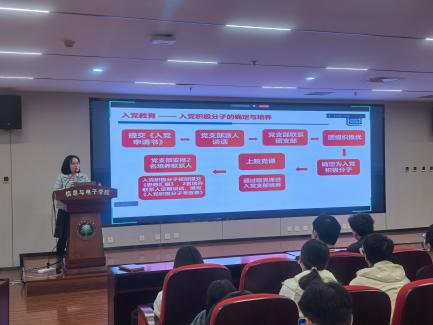 在第三堂专题党课中,潘欣老师以党章为根本遵循,紧密结合学院党员发展的工作实际,详细阐释了党员的基本条件与标准,系统梳理了从递交入党申请书到成为正式党员的完整流程,着重强调各个环节的关键节点与规范要求。