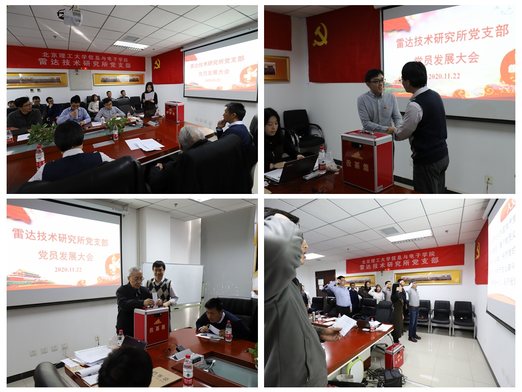大会伴随着奏唱国歌正式开始,首先分别讨论了张伟锋、田琳琳两位同志的发展问题。按照发展党员程序,两位同志分别宣读了入党志愿书并介绍了个人基本情况,入党介绍人、培养人和支委分别介绍了对两位同志的培养和考察情况,全体党员对两位同志是否符合党员发展条件等问题进行了讨论,最后经全体党员的无记名投票,一致同意接收张伟锋、田琳琳同志为中共预备党员,考察期一年。支部书记杨小鹏为两位同志佩戴党徽,宣传委员田卫明作为领誓人,带领新接收党员进行入党宣誓,参会的全体党员共同重温入党誓词。接收预备党员工作能够为党组织注入新鲜血液,是保证党组织活力的重要保证,也是雷达所党支部组织工作的重点。