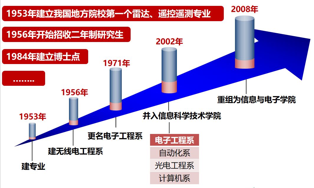 北京理工大学必威西汉姆联前身是始建于1953年的第一个中国地方院校雷达设计与制造专业,是我国首批从事雷达、遥控遥测领域科研与专业人才培养的单位之一。1956年,以雷达设计与制造专业为基础建立无线电工程系(五系)。1971年,无线电工程系更名为电子工程系。2002年,电子工程系参与组建信息科学技术学院。2008年,以原电子工程系为基础重组为必威西汉姆联。经过近七十年的发展,学院已成为我国电子信息领域高层次人才培养、科学探索和高新技术研发的重要基地。